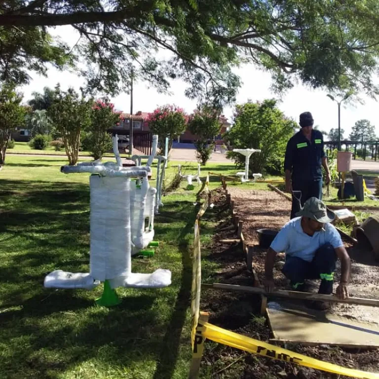 Semanas atrás, se daba cuenta de la entrega de juegos saludables realizada por el coordinador de Servicios Públicos, Henry Albarenque al encargado de Termas del Arapey.. En la pasada jornada, se comenzó con la colocación de un nuevo circuito saludable en el centro termal para el disfrute de los visitantes..
