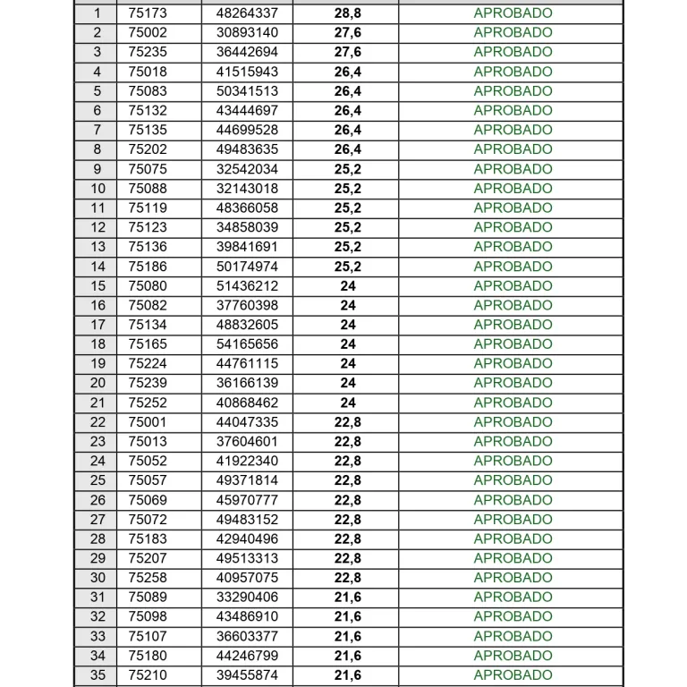 De acuerdo a lo establecido en las bases del llamado, los aspirantes que alcanzaron el puntaje requerido continúan en el proceso de selección, avanzando a la siguiente etapa.